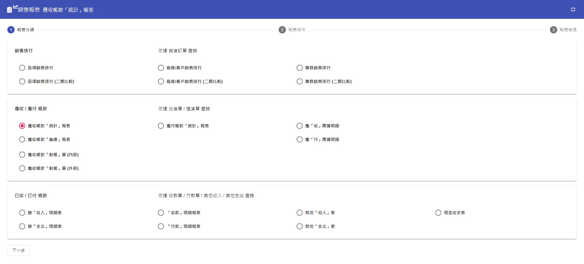 :依據出貨/進貨統計,應收/應付款項